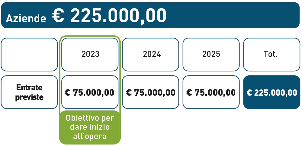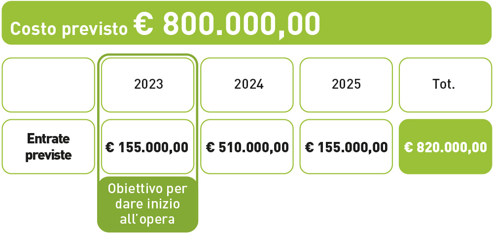 Con contributo di € 20 al mese  = € 240 annui per i prossimi 3 anniIn questo modo le famiglie potranno sostenere questa opera con un valore di € 150.000